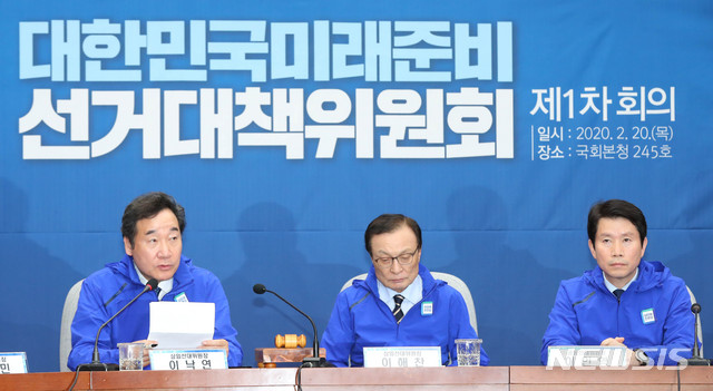 [서울=뉴시스] 장세영 기자 = 이낙연(왼쪽) 더불어민주당 공동상임선대위원장이 20일 서울 여의도 국회에서 열린 더불어민주당 제1차 선거대책위원회 회의에 참석해 현안관련 발언을 하고 있다. 2020.02.18.