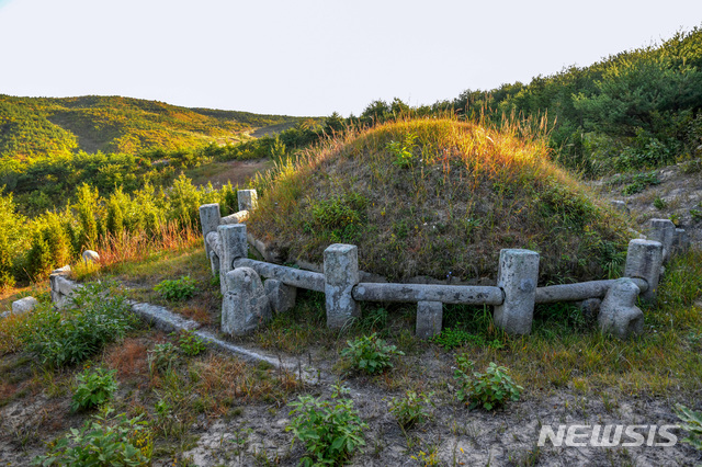 [서울=뉴시스] 북한 개성직할시 선적리 산 중턱에 있는 고려 11대 문종(文宗)의 무덤인 경릉(景陵) 후면. 비교적 높은 야산에 자리잡고 있고, 인근에 민가들이 존재하지 않는다. (사진=평화경제연구소 제공) 2020.03.07.
