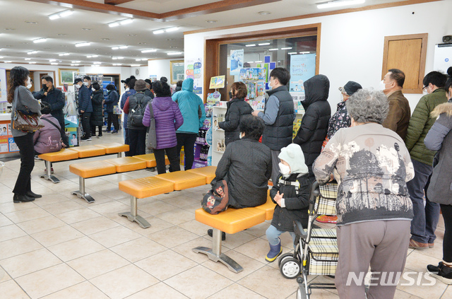 마스크 구매하기 위해 줄을 선 시민들