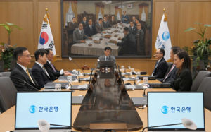 [서울=뉴시스] 김진아 기자 = 원유철(오른쪽) 미래한국당 대표가 23일 서울 여의도 국회 의원회관 원유철의원실에서 최고위원 간담회를 하고 있다.  간담회는 장석춘 최고위원, 정운천 최고위원, 원 대표, 김기선 정책위의장이 참석했다. 2020.03.23.