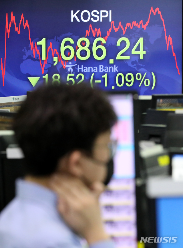 코스피, 다시 하락...1,686.24 장 마감