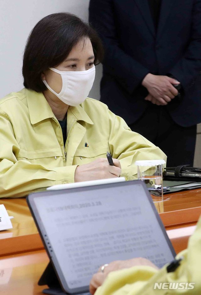 [서울=뉴시스]김선웅 기자 = 유은혜 사회부총리 겸 교육부장관이 28일 오전 서울 종로구 정부서울청사에서 코로나19 개학연기와 관련해 열린 전국 시도교육감 간담회에 참석하고 있다. 2020.03.28.