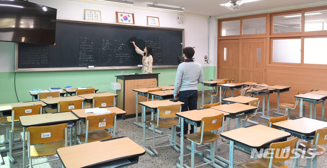 텅빈 교실에서 온라인 수업