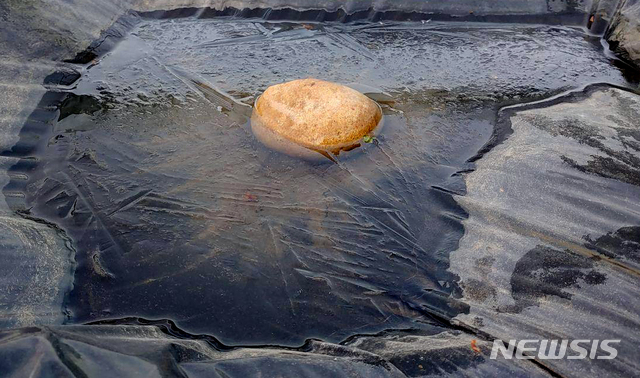 [춘천=뉴시스] 장경일 인턴기자 = 24일 오전 6시 영하 0.1도까지 내려간 강원 춘천시 신북읍의 밭 웅덩이에 고인 물이 얼어 있다. 강원지방기상청에 따르면 이날 설악산의 아침 최저기온은 영하 7.3도까지 떨어졌다. 강원도 산간과 영서지역의 꽃샘추위는 닷새째 이어졌다. 영동지역도 5도 내외에서 기온이 머물러 쌀쌀한 날씨를 보였다.25일 따뜻한 서풍의 영향으로 아침 기온이 영상권으로 회복하겠지만 26일 산간지역에서는 다시 영하권으로 떨어질 것으로 보인다. 2020.04.24.