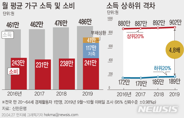 [그래픽]보통사람 보고서 "월 486만원 벌고 소비에 241만원"