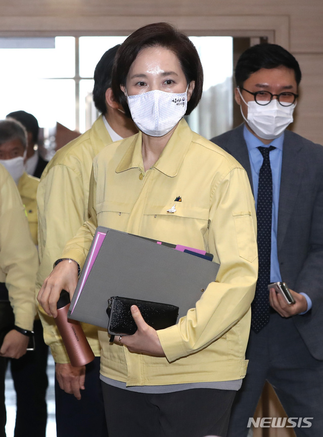 [서울=뉴시스] 전진환 기자 = 유은혜 사회부총리 겸 교육부장관이 11일 오전 서울 종로구 정부서울청사 중앙재난안전상황실 서울상황센터에서 열리는 코로나19 대응 중대본 회의에 참석하고 있다. 2020.05.11.