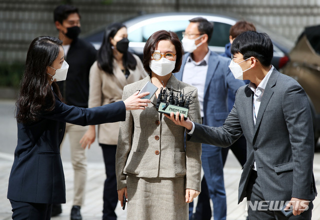 [서울=뉴시스] 박미소 기자 = 입시비리 및 사모펀드 등 혐의로 재판에 넘겨진 정경심 동양대 교수가 13차 공판을 출석하기 위해 14일 오전 서울 서초구 서울중앙지방법원으로 들어서고 있다. 2020.05.14.