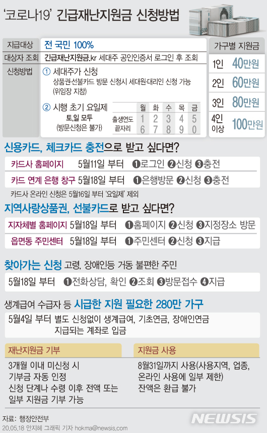 [그래픽]긴급재난지원금, 오늘부터 은행·주민센터 방문 신청