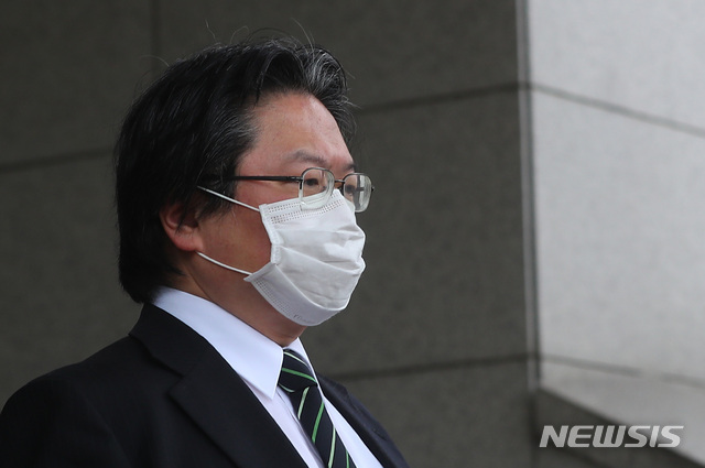 [서울=뉴시스]전신 기자 = 소마 히로히사 주한 일본대사관 총괄공사가 19일 서울 종로구 외교부 청사로 초치, 항의를 받은 후 청사를 나서고 있다. 2020.05.19.