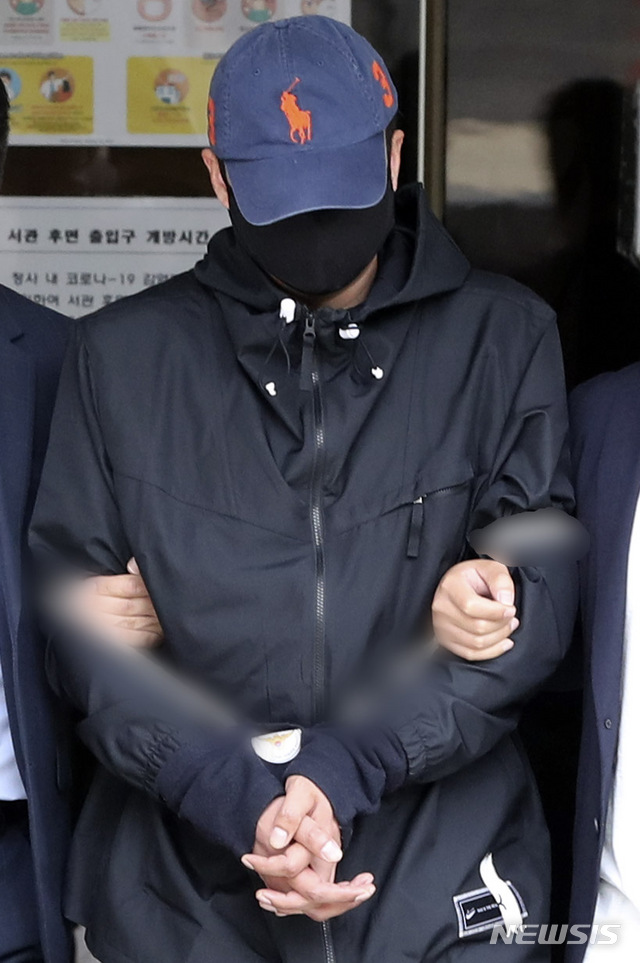 [서울=뉴시스]최진석 기자 = 박사방 유료회원이 25일 서울 서초구 서울중앙지법에서 아동청소년의 성보호에 관한 법률 위반(아동성착취물 배포 등) 혐의 구속 전 피의자 심문(영장실질심사)을 받은 뒤 지법을 나오고 있다. 2020.05.25.