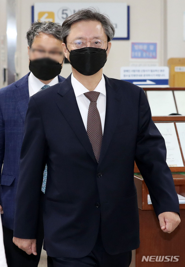 [서울=뉴시스]홍효식 기자 = '불법사찰 지시' 혐의로 기소된 우병우 전 청와대 민정수석이 2일 서울 서초구 서울고등법원에서 열린 항소심 속행 공판에 참석하기 위해 법정으로 향하고 있다. 2020.06.02.