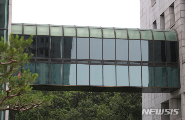 [서울=뉴시스] 조수정 기자 = 4일 서울 서초동 대검찰청 구름다리가 검게 '틴팅' 되어있다. 이 구름다리는 윤석열 검찰총장이 구내식당에서 점심식사를 할 때 이용하는 길이기도 하다. 2020.06.07.