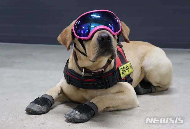 [서울=뉴시스]경찰인재개발원은 11일 대전 경찰인재개발원에서 경찰견 종합훈련센터 신축 개소식을 개최했다. 센터에서 훈련을 마친 경찰견들은 국가 중요시설 및 다중이용시설에 투입되어 폭발물 탐지, 범죄·수사, 마약 탐지 등 다양한 분야에서 활동하게 된다. 사진은 채취증거견 폴리. (사진=경찰인재개발원 제공) 2020.06.13.