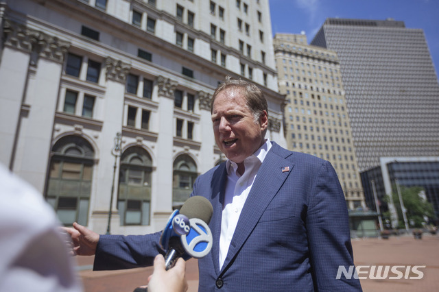 [뉴욕=AP/뉴시스] 제프리 버먼 뉴욕 남부지검장이 20일(현지시간) 검찰청사로 출근하면서 기자들의 질문에 답변하고 있다. 앞서 미 법무부는 도널드 트럼프 대통령 측근을 수사 중인 버먼 교체 절차에 착수했다고 밝혔다. 2020.06.21