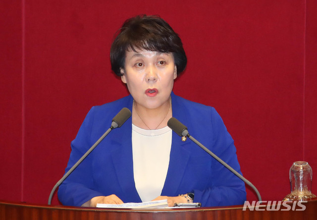 [서울=뉴시스] 장세영 기자 =더불어민주당 소속 정춘숙 국회 여가위원장이 29일 서울 여의도 국회 본회의장에서 열린 제379회국회(임시회) 제6차 본회의에서 당선인사를 하고 있다. 2020.06.29.