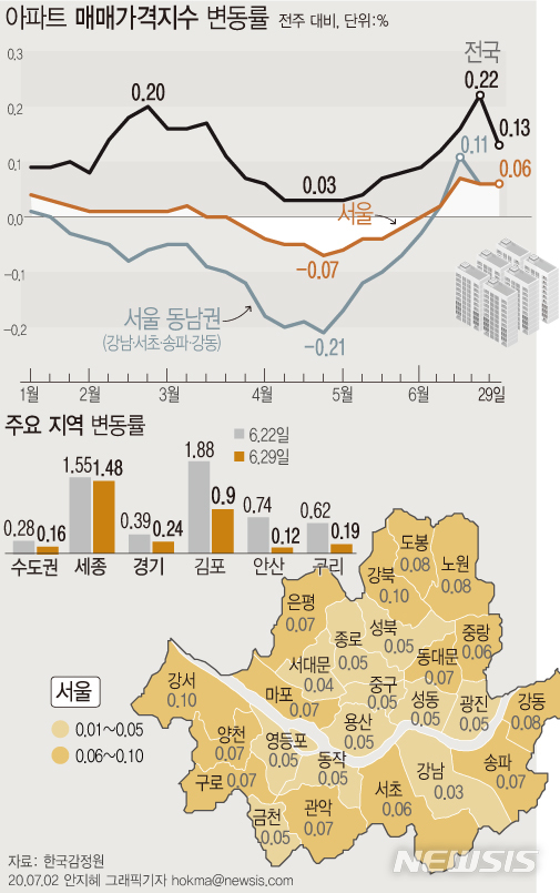 [그래픽]수도권 아파트값 상승세 둔화 '0.28→0.16%'