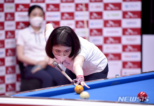 [서울=뉴시스]박주성 기자 = 8일 워커힐 서울에서 열린 PBA-LPBA TOUR 개막전 SK렌트카 챔피언십 3일차 경기에서 서한솔 선수가 경기를 하고 있다. (사진=PBA 투어 제공) 2020.07.08.