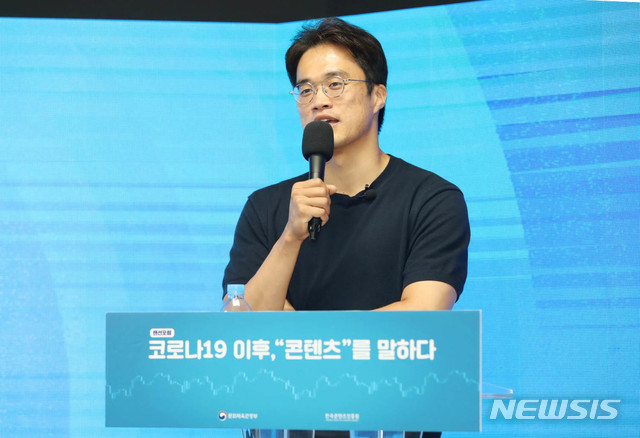 [서울=뉴시스] 박민석 기자 = 김용우 구글코리아 매니저가 21일 서울 중구 CKL기업지원센터에서 열린 랜선 포럼 '코로나19 이후, 콘텐츠를 말하다'에서 업계 사례 브리핑을 하고 있다. (사진=한국콘텐츠진흥원 제공) 2020.07.21.