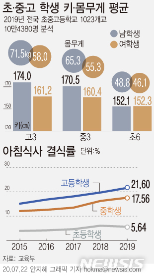 [그래픽]청소년 키 몸무게 평균, 아침식사 결식률