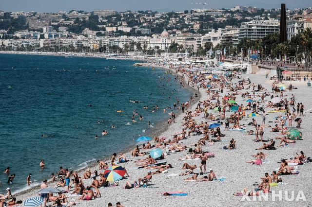 [니스=신화/뉴시스]여름 휴가철을 맞아 22일(현지시간) 프랑스 남부 니스에 있는 해변에 피서객들이 몰려들어 해변을 즐기고 있다. 프랑스 정부는 코로나19 재확산을 막기 위해 이번 주부터 공공장소에서의 마스크 착용을 의무화했다. 프랑스의 코로나19 누적 확진자 수는 17만8336명이고 사망자 수는 3만172명으로 집계됐다. 2020.07.23.