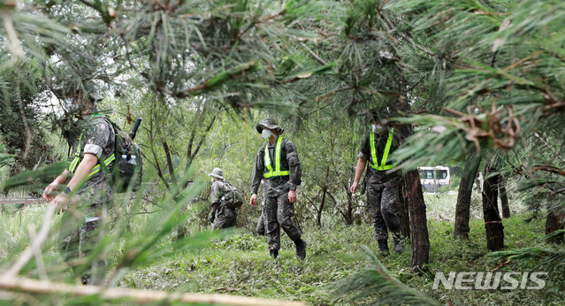[가평=뉴시스] 이영환 기자 = 육군 2군단 불사조특공연대 장병들이 7일 오전 경기 가평군 자라섬에서 지난 6일 춘천 의암댐에서 발생한 선박 전복사고 관련 실종자 수색작전을 펼치고 있다. 2020.08.07.