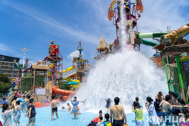 [우한=신화/뉴시스] 15일(현지시간) 중국 후베이성 우한시에 있는 마야비치 워터파크에서 사람들이 몰려 즐거운 시간을 보내고 있다. 우한은 한때 신종 코로나바이러스 감염증(코로나19) 집중 발생지였지만, 최근 일상을 회복한 모습이다. 2020.08.18