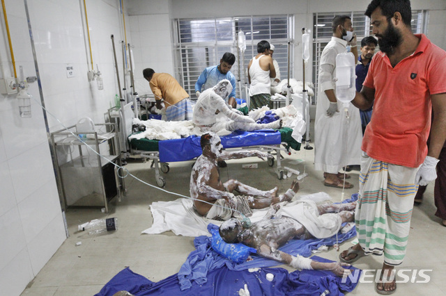 방글라데시 사원 가스폭발사고 부상자들