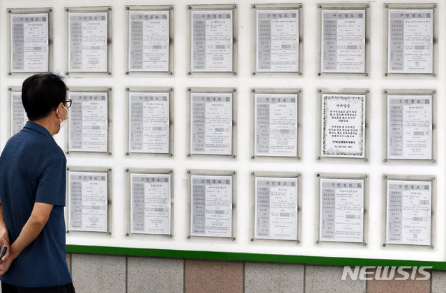 [인천=뉴시스] 이종철 기자 = 신종 코로나바이러스 감염증(코로나19) 영향으로 취업자 수가 27만명 넘게 감소하며 6개월째 하락세를 이어가고 있는 가운데 9일 오전 인천시 남동구 간석오거리역 구인정보 게시판에서 시민이 일자리를 살펴보고 있다. 2020.09.09.