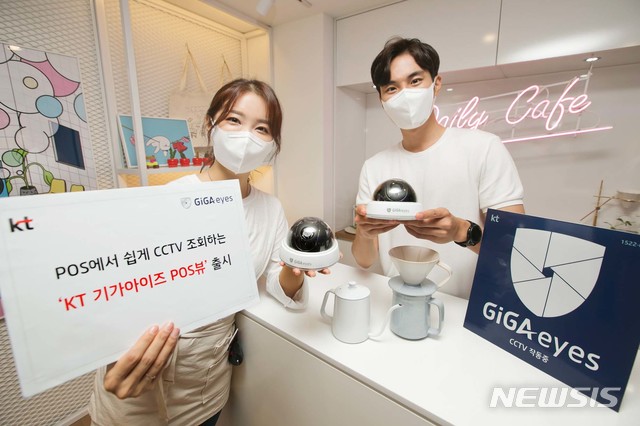 [서울=뉴시스]KT는 기가아이즈와 POS를 연계한 ‘기가아이즈 포스뷰’ 서비스를 출시한다고 29일 밝혔다. 모델들이 KT 기가아이즈 POS뷰 서비스를 소개하고 있다. (사진=KT 제공) 2020.09.29.