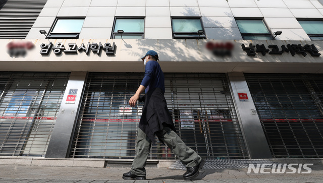 [서울=뉴시스] 박미소 기자 = 추석인 1일 오후 서울 동작구 노량진의 한 대형학원이 신종 코로나바이러스 감염증(코로나19) 확산 방지를 위한 집합금지명령으로 문이 닫혀있다. 2020.10.01.