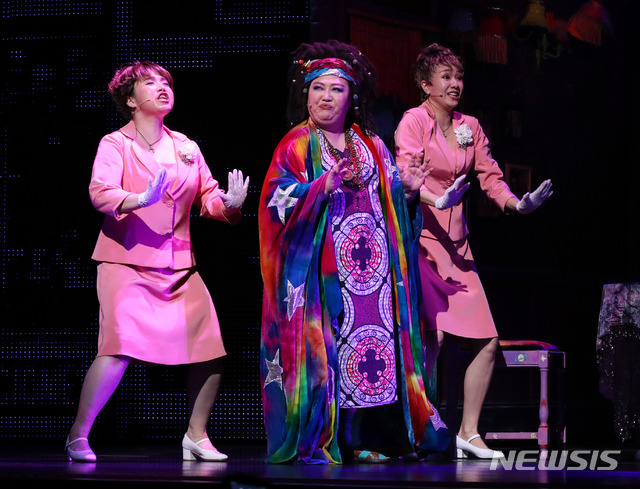 [서울=뉴시스] 고범준 기자 = 배우 박준면(가운데)이 15일 오후 서울 구로구 디큐브아트센터에서 열린 뮤지컬 '고스트' 프레스콜에서 멋진 무대를 선보이고 있다. 2020.10.15.