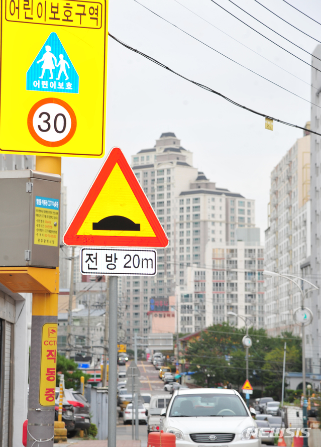 [광주=뉴시스] 김혜인 기자 = 지난 16일 오전 광주 남구 주월동 모 초등학교 주변 어린이 보호구역에 불법 주차 차량이 주차돼있다. 2020.10.18.