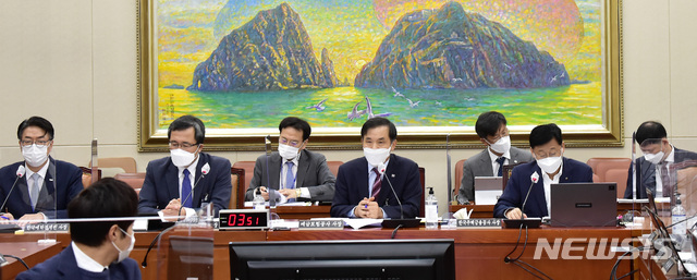 [서울=뉴시스] 전진환 기자 = 위성백 예금보험공사 사장이 20일 서울 여의도 국회 본관 정무위원회 회의실에서 열린 예금보험공사·한국자산관리공사·한국주택금융공사·한국예탁결제원 등 국정감사에서 질의에 답변하고 있다. (공동취재사진) 2020.10.20.