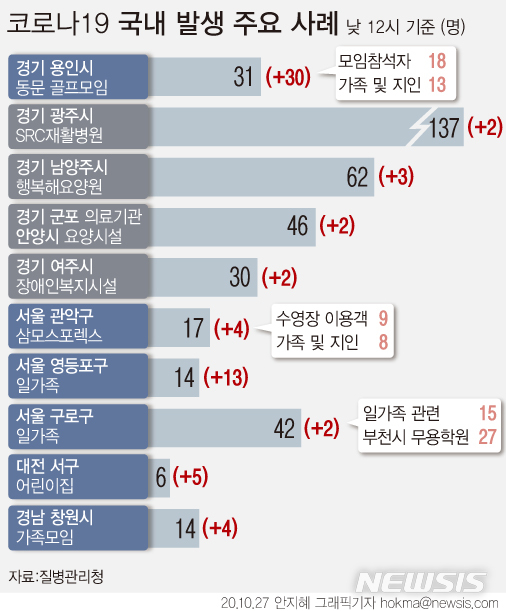 [그래픽]용인 골프모임 관련 31명 확진