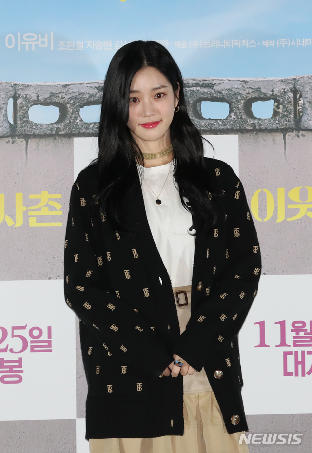 [서울=뉴시스] 고승민 기자 = 11일 서울 CGV용산에서 열린 영화 '이웃사촌(감독 이환경)' 기자간담회에서 배우 이유비가 포즈를 취하고 있다. 도청팀장 대권 등이 자택 격리된 정치인 가족을 감시하면서 벌어지는 이야기를 그린 '이웃사촌'은 오는 25일 개봉한다. 2020.11.11