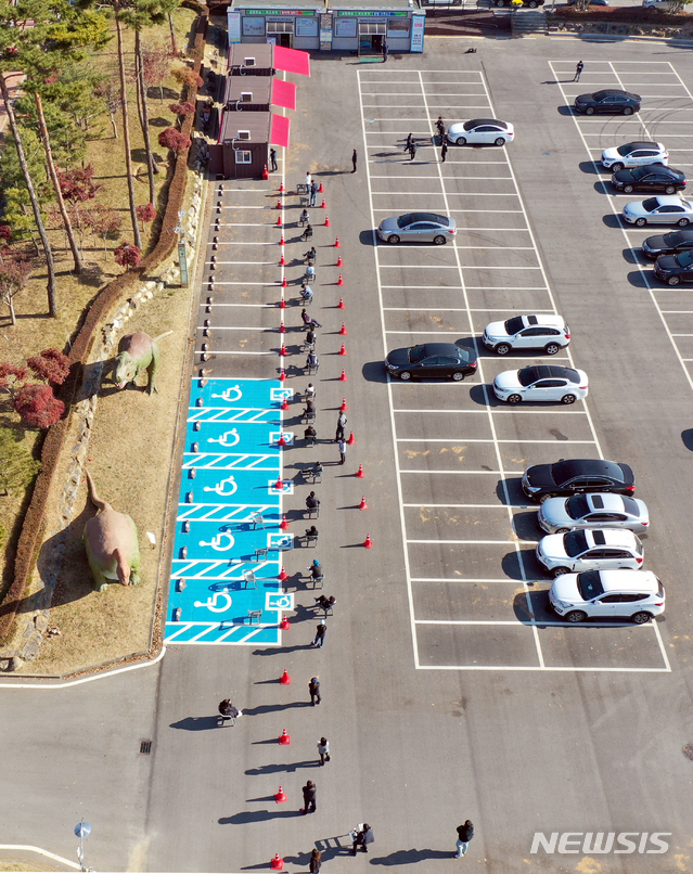 [화순=뉴시스] 류형근 기자 = 12일 오전 전남 화순군 화순읍 이용대체육관 주차장에서 신종 코로나바이러스 감염증(코로나19) 선별검사가 진행되고 있다. 화순에서는 요양보호사가 코로나19 확진 판정을 받았다. 2020.11.12.