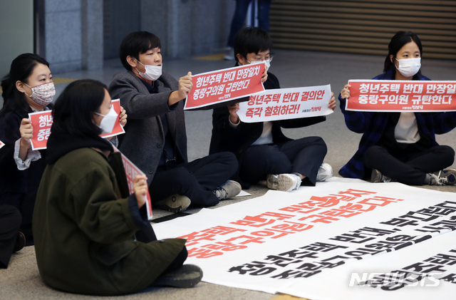 '청년주택 반대결의 철회' 촉구 중랑구청 기습농성