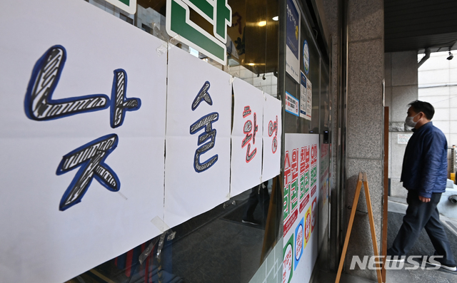 [수원=뉴시스] 김종택기자 = 신종 코로나바이러스 감염증(코로나19) 대응 수도권 사회적 거리두기를 현행 1.5단계에서 2단계 격상을 하루 앞둔 23일 오후 경기도 수원시 팔달구 인계동 한 음식점에서 주인이 '낮술환영' 안내문을 붙이고 있다. 24일 0시부터 사회적 거리두기가 2단계로 상향 조정됨에 따라 카페는 영업시간과 관계없이 포장·배달만 허용되고 음식점은 저녁시간까지는 정상영업을 하되 오후 9시 이후로는 포장·배달만 가능하다. 2020.11.23.