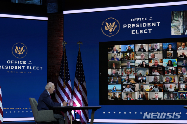 시장들과 화상회의 하는 바이든 당선인