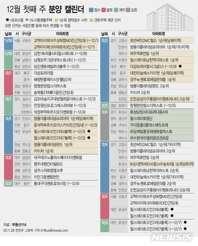 [그래픽] 12월 첫째 주 분양 캘린더