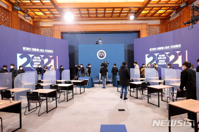 온오프 방식으로 진행되는 문재인 대통령의 신년 기자회견장