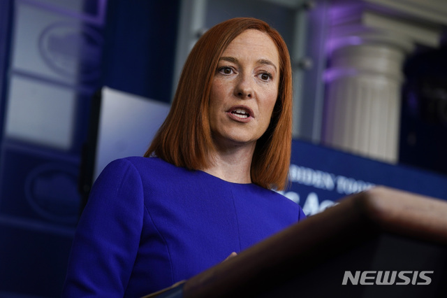[워싱턴 =AP/뉴시스] 젠 사키 미 백악관 신임 대변인이 20일(현지시간) 조 바이든 대통령 취임 이후 첫 브리핑을 하고 있다. 사키 대변인은 백악관이 국민들을 상대로 신종 코로나바이러스 감염증(코로나19) 정례 브리핑을 재개할 계획이라고 말했다. 2021.01.21.
