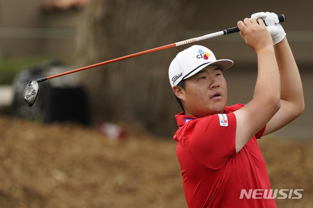 [라킨타=AP/뉴시스]임성재가 23일(현지시간) 미 캘리포니아주 라 킨타의 PGA웨스트 피트 다이 스타디움 코스에서 열린 미프로골프(PGA) 투어 아메리칸 익스프레스 3R 2번 그린에서 티샷하고 있다. 전날 선두였던 임성재는 10언더파 206타, 공동 20위로 내려앉았고 2위였던 김시우는 15언더파 201타로 맥스 호마, 토니 피나우(이상 미국)와 공동 1위에 올랐다. 2021.01.24.