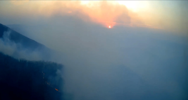 [서울=뉴시스]지난 21일 경북 안동과 예천, 경남 하동, 충북 영동 등 전국에서 산불이 잇따라 발생했다. 사진은 22일 충북 영동 산불 현장 모습. (사진=산림청 영상 캡쳐) 2021.02.22. [email protected] *재판매 및 DB 금지