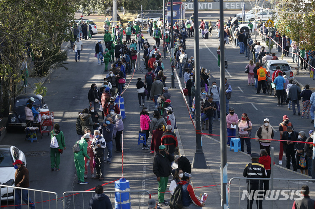 [멕시코시티=AP/뉴시스]24일(현지시간) 멕시코 수도 멕시코시티의 이스타칼코 자치구에서 60세 이상 주민을 대상으로 코로나19 백신 접종을 시행한 가운데 해당 주민들이 러시아의 스푸트니크 V 백신을 접종하기 위해 순서를 기다리고 있다. 2021.02.25.