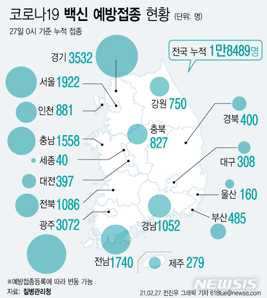 [그래픽] 코로나 백신 첫날 1만8489명 접종