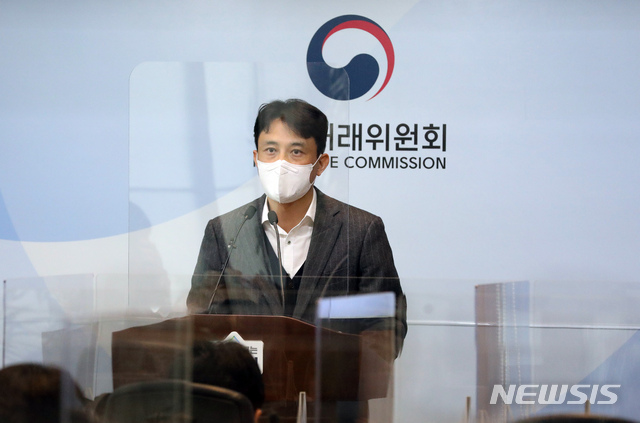 [세종=뉴시스]강종민 기자 = 임경환 공정거래위원회 지식산업감시과장이 3일 오전 정부세종청사에서 (주)대웅제약 및 (주)대웅이 부당하게 특허권 침해금지의 소를 제기해 제네릭 약품의 판매를 방해한 행위에 대해 시정명령과 과징금(22억 9700만원)을 부과하고 법인을 검찰에 고발하기로 결정했다고 밝히고 있다. 2021.03.03.