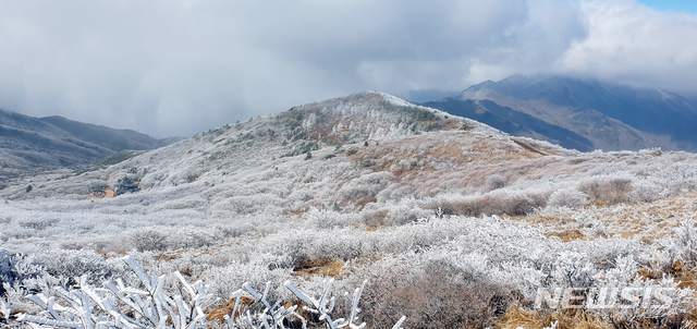 [구례=뉴시스]=국립공원공단 지리산국립공원전남사무소는 지난 2일 지리산 노고단대피소 일대에 상고대가 활짝 폈다고 3일 밝혔다. (사진=지리산국립공원전남사무소 제공). 2021.03.03. [email protected]