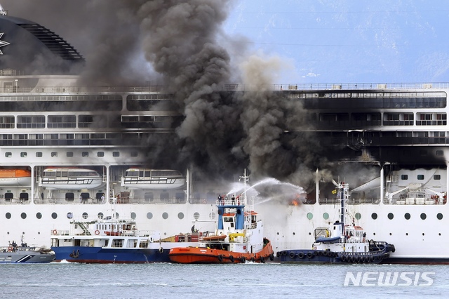 유람선 화재 진압하는 그리스 소방선