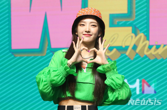 [서울=뉴시스]배훈식 기자 = 걸그룹 위클리(Weeekly) 소은이 17일 오후 서울 마포구 신한카드 판스퀘어에서 열린 세 번째 미니앨범 '위 플레이' 쇼케이스에 참석해 포즈를 취하고 있다. 2021.03.17. [email protected]